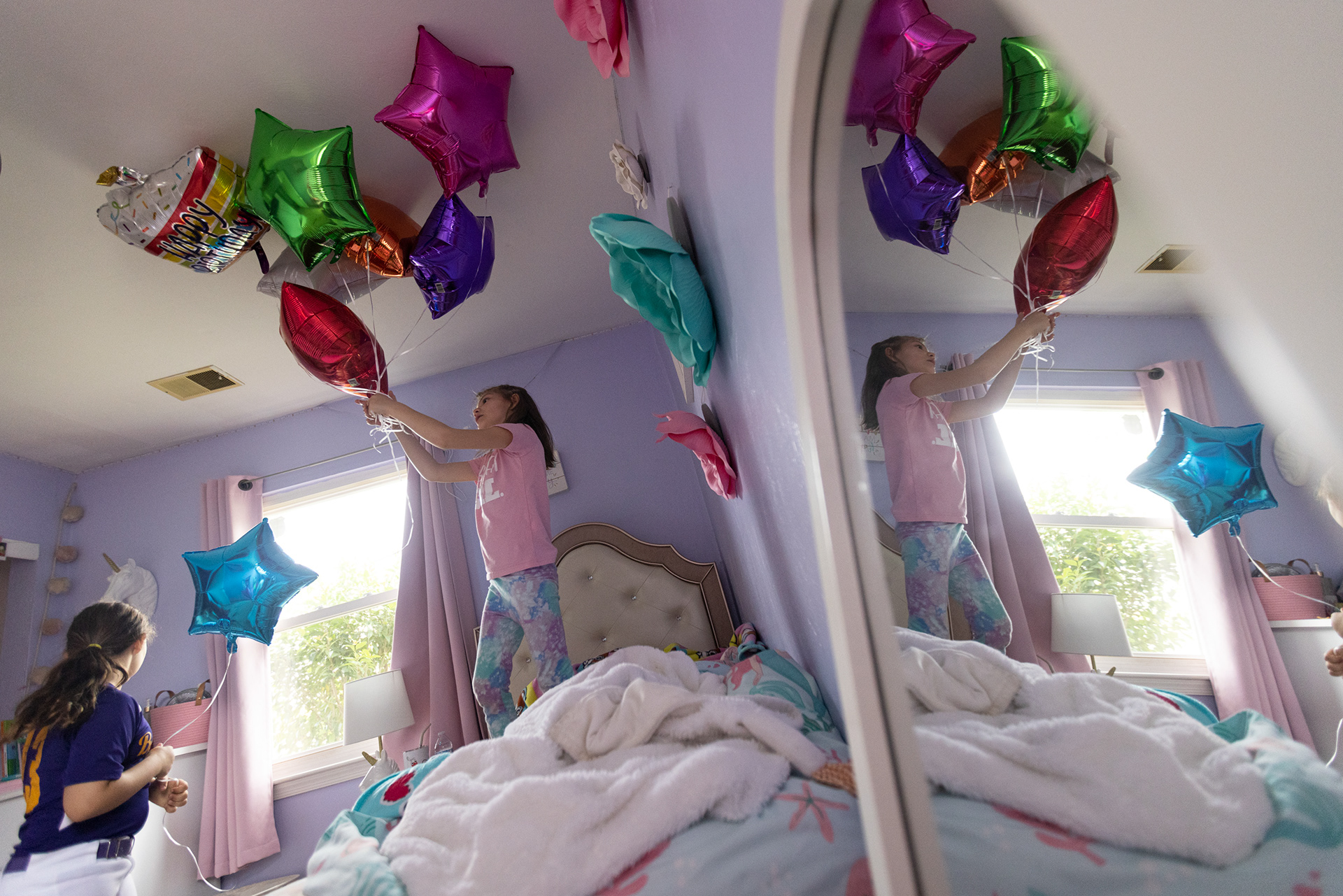 The TV in an adjoining room blared as Harper, then 6, turned up the volume.